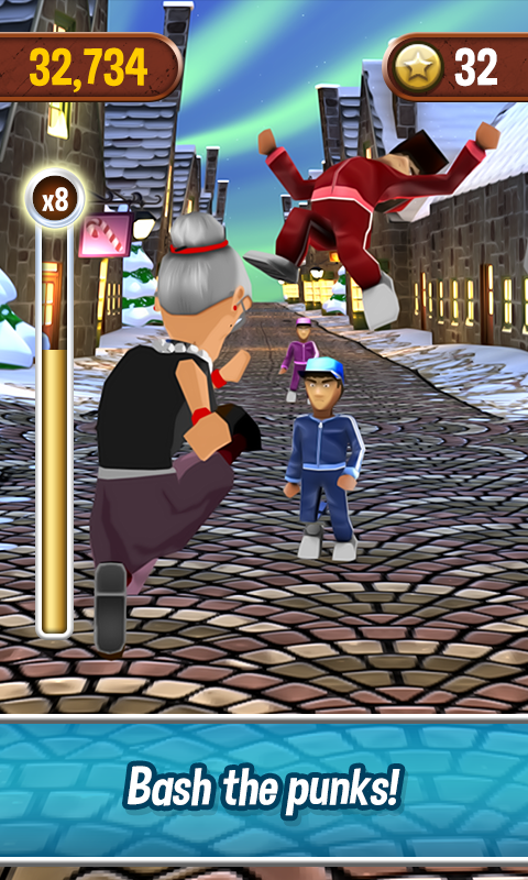 Nossa Granny foi trancado em the Angry Asylum por Fred o agente de branco, ela está tramando sua fuga, e ela precisa de você para guiá-la pelas ruas, uma vez que ela arrebentou!